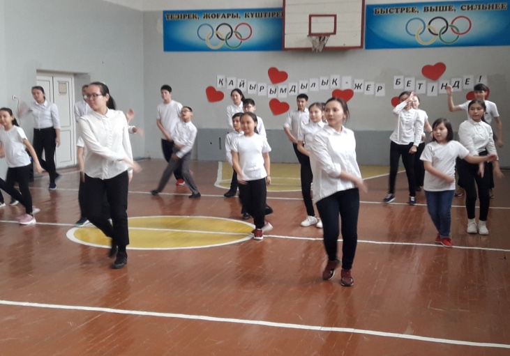 Осы күні мектебіміздің хореографтары М.Умбетова мен Ж.Жалғастың ұйымдастыруымен "Қайырымдылық жер бетінде" атты флешмоб өткізілді.