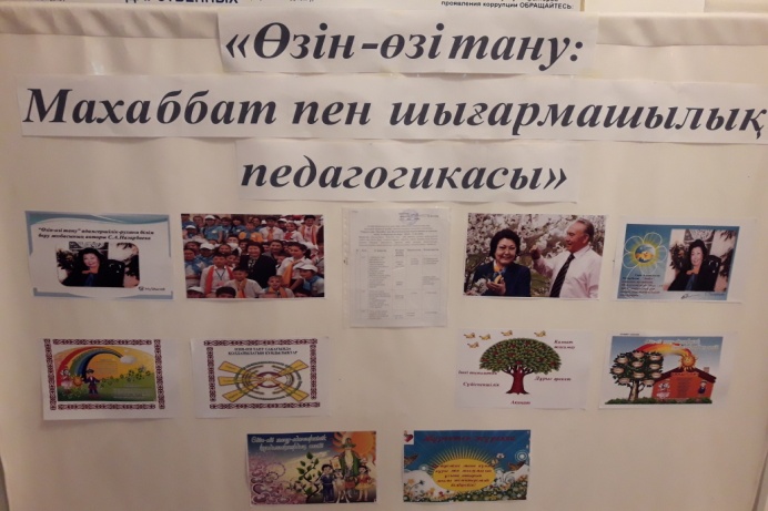 4 ақпан күні мектеп кітапханашысы Г.Жүнісова "Өзін-өзі тану" рухани адамгершілік пен білім беру бағдарлама авторы С.Назарбаеваның қызметі туралы "Кәусар бұлақ" атты кітап көрмесін ұйымдастырды.