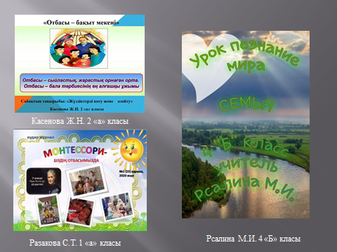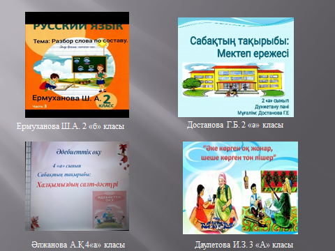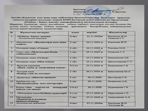 Алдағы күндері апталық мұғалімдердің ашық сабақтарымен жалғасын тапты. Әдебиеттік оқу, айналадағы орта, математика, орыс тілі, дүниетану пәндері бойынша ашық видео сабақтар өткізілді. Видео сабақтарды ЗУМ платформасы және ватцап желісі арқылы өткізіп, мектептің инстаграм парақшасына жіберіліп отырды.