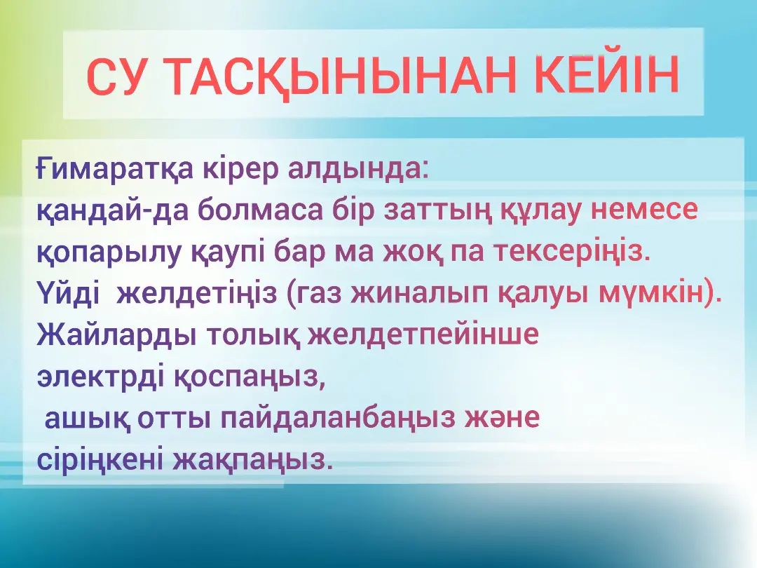 Ата-аналар мен оқушылардың назарына!!! Су тасқыны кезіндегі қауіпсіздік ережелері