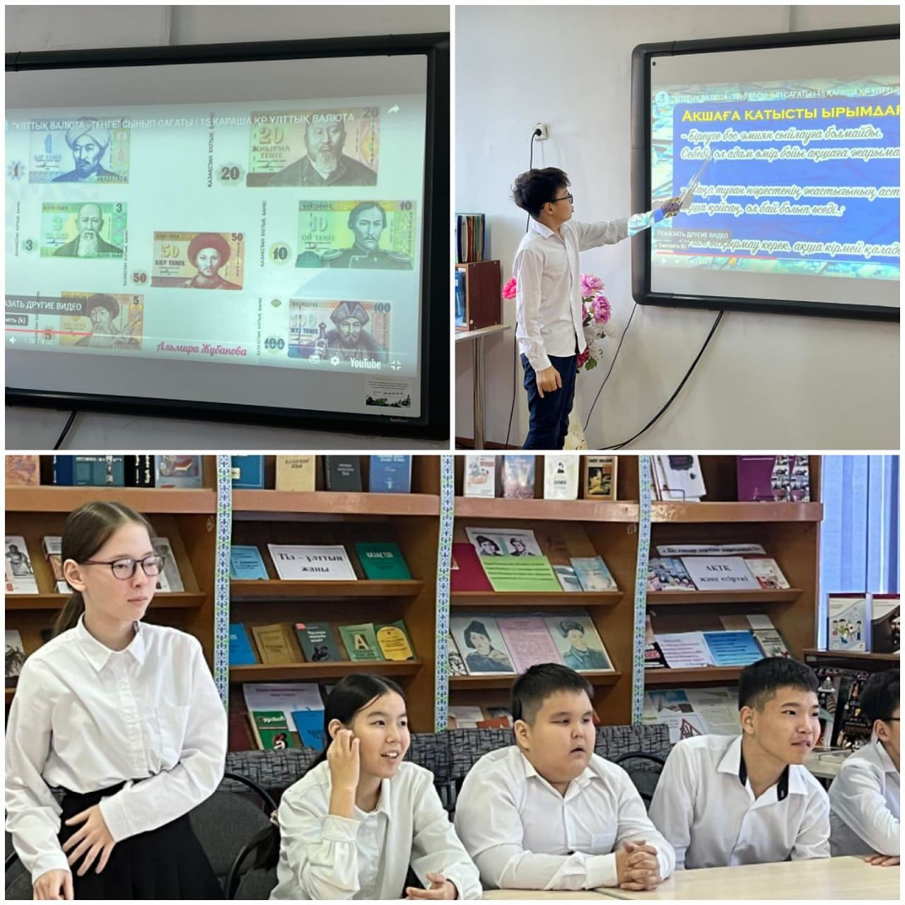 Қазақстан валютасының тарихы: яғни, оның 1993 жылы енгізілуі, монеталар мен банкноталардың дизайнының ерекшеліктері, сондай-ақ теңгенің елдің экономикалық дамуына қосқан үлесі туралы әңгіме жүргізілді. Балалар монеталар мен банкноталармен танысып, олардың символикасы, ерекшеліктері мен қауіпсіздігі туралы ақпарат алды.