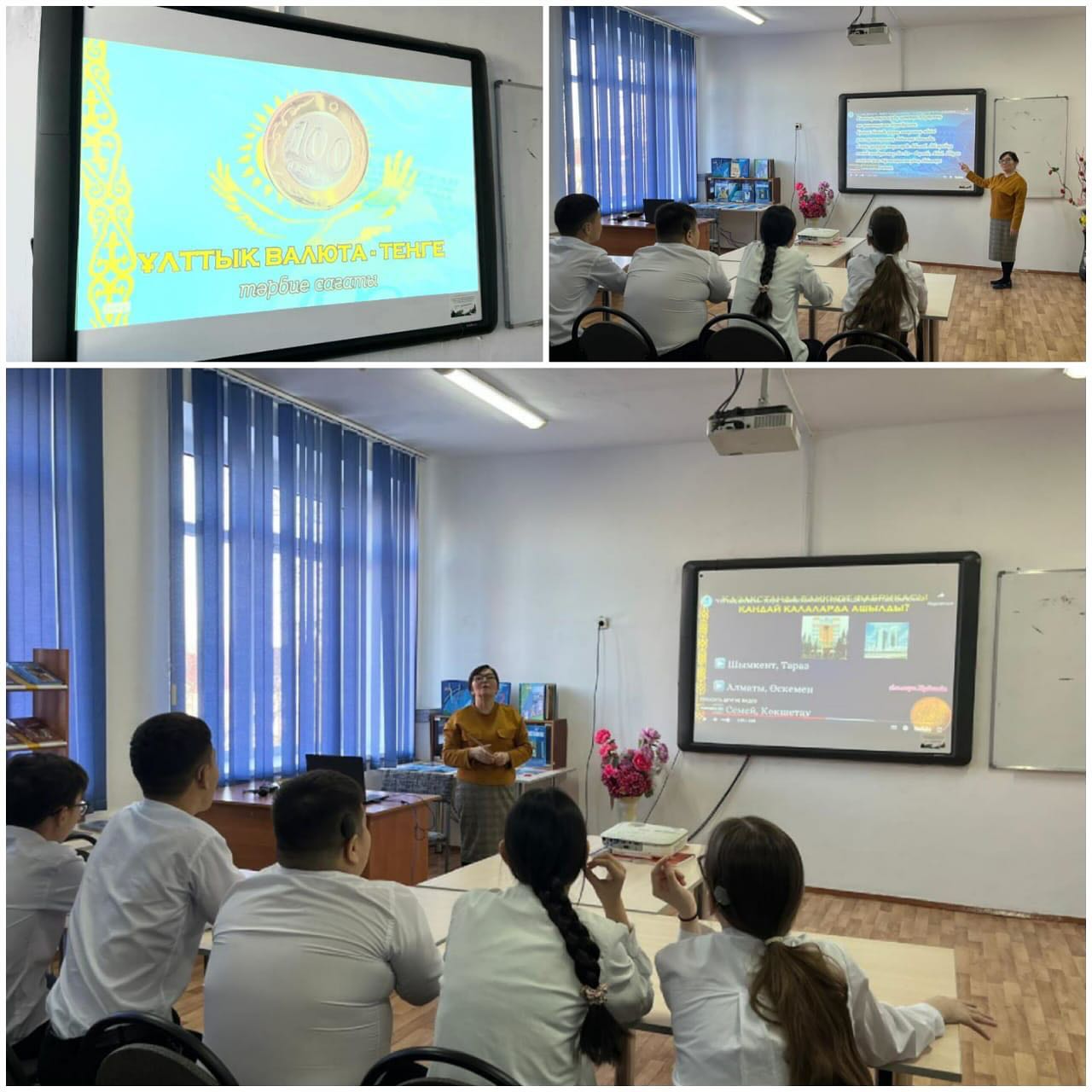 Сабақ барысында оқушыларға ұлттық валютаның маңызы және 15 қараша - Ұлттық валюта күні - теңгенің мәні туралы айтылды. Бұл күннің барлық қазақстандықтар үшін неліктен маңызды екені және валюта жүйесінің ел экономикасын дамытудағы рөлі түсіндірілді.