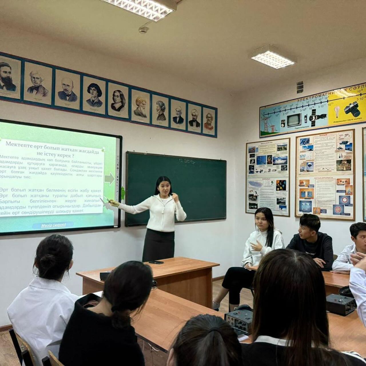 Өрт қауіпсіздігіне қатысты негізгі ережелер: Студенттерге өрттің шығу себептері, өртті болдырмау үшін қабылдануы тиіс алдын алу шаралары, өрт кезінде әрекет ету тәртібі туралы толық ақпарат берілді.