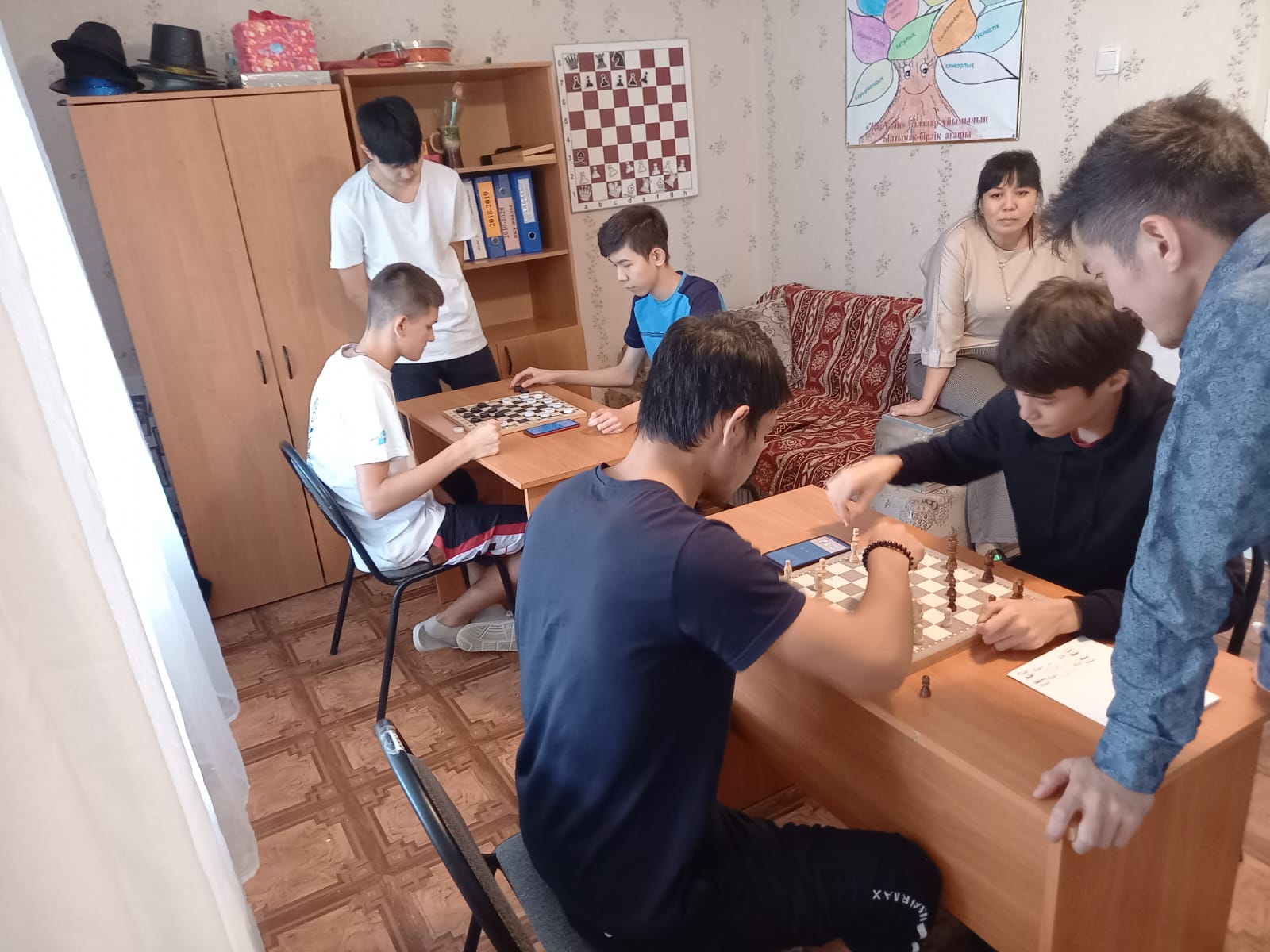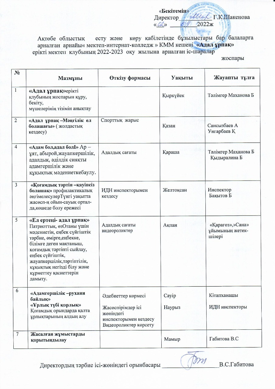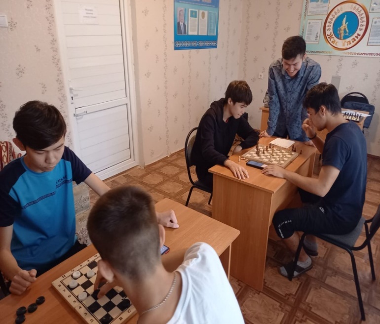 2022 жылдың 21 қазан күні «Адал ұрпақ» ерікті мектеп клубының жоспарына сәйкес педагогтар Сансызбаев А.Б, Унгарбаев К. жоғары класс оқушылары мен колледж студенттерінің бос уақытын тиімді пайдалану, жас ұрпақты саналы, бойын зиянды әдеттерден аулақ ұстайтын, ой - өрісі жоғары тұлға болуға жетелеу мақсатында дойбыдан сайыс өткізді.